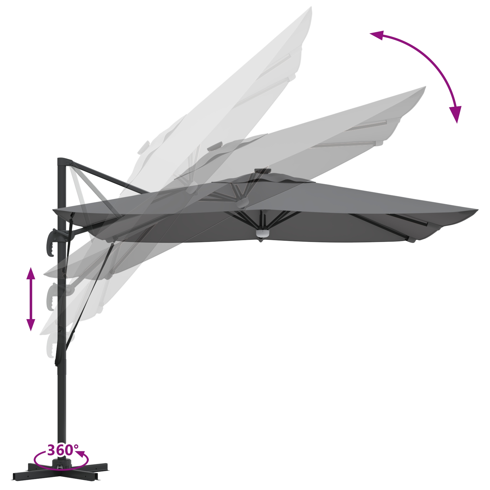 Parasol Roma Antracit 286 x 285 x 270 cm Aluminiu și poliester