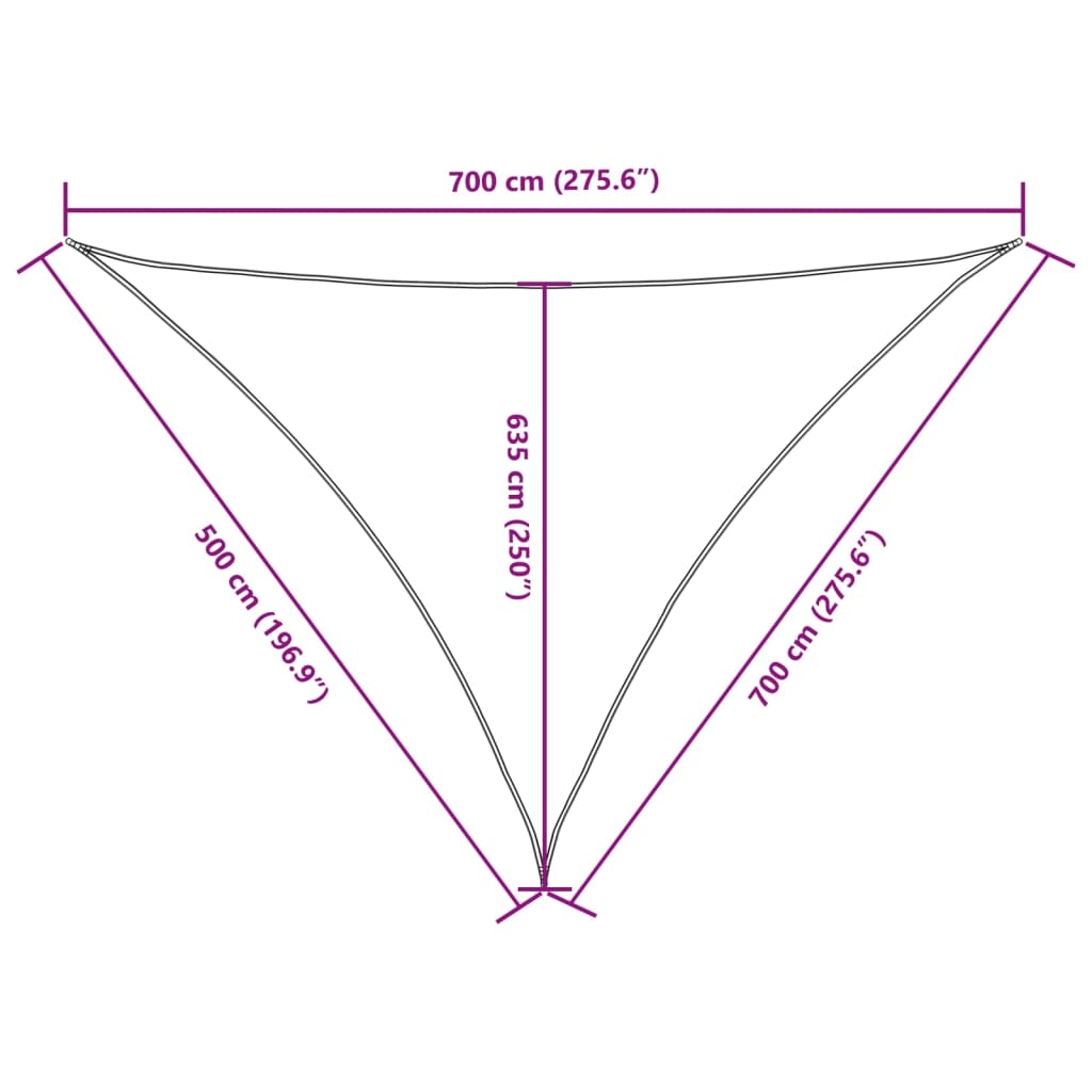 Parasolar, cărămiziu, 5x7x7 m, țesătură oxford, triunghiular