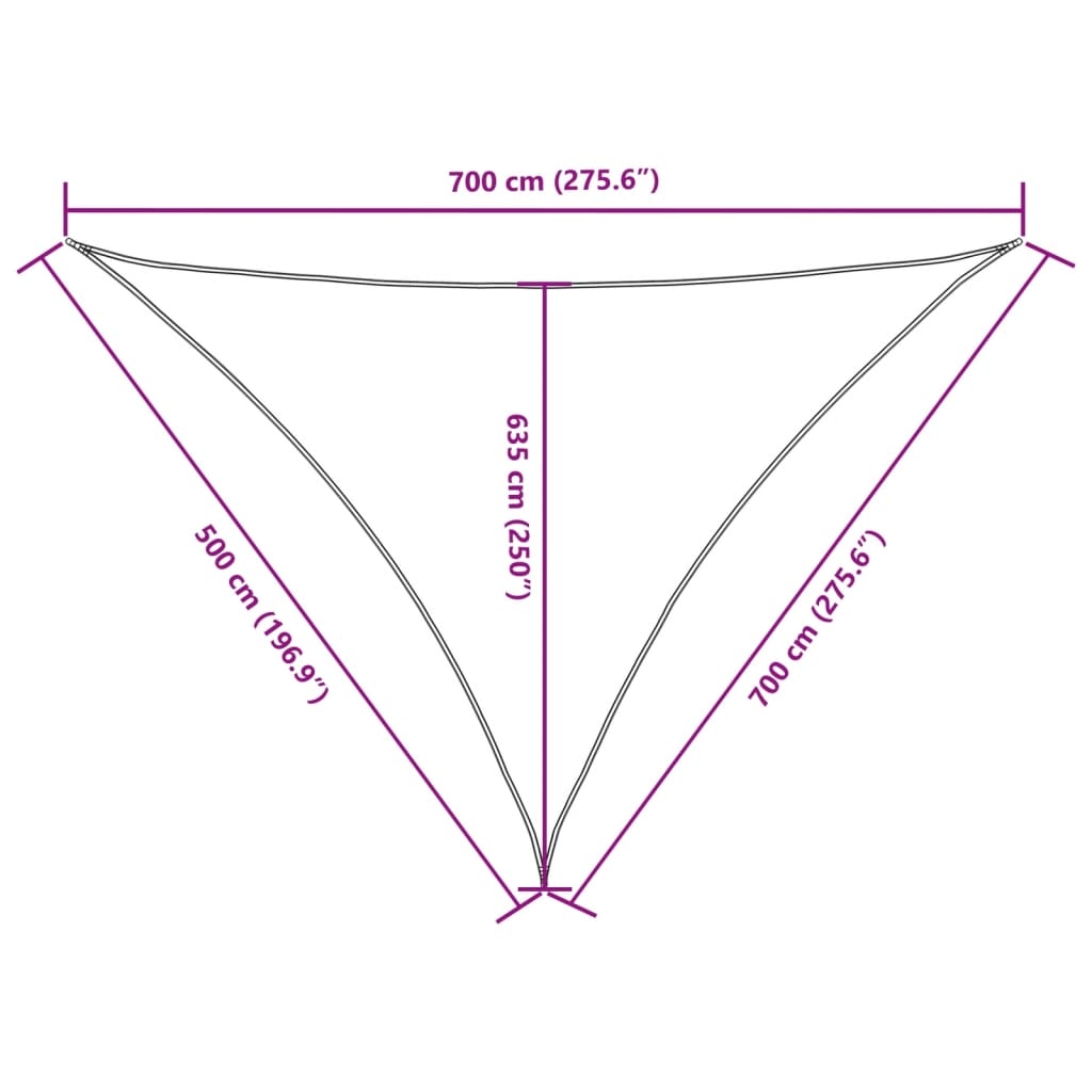 Parasolar, verde închis, 5x7x7 m, țesătură oxford, triunghiular
