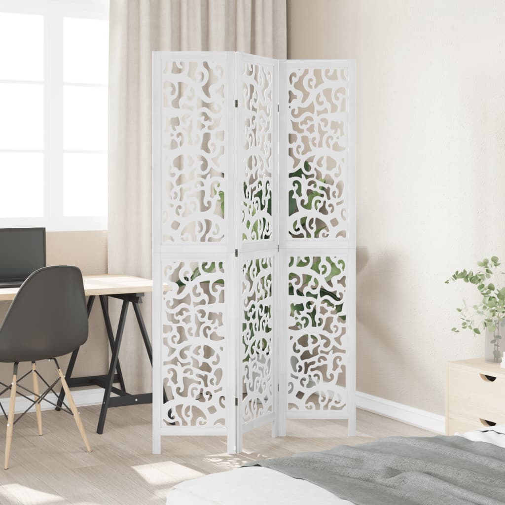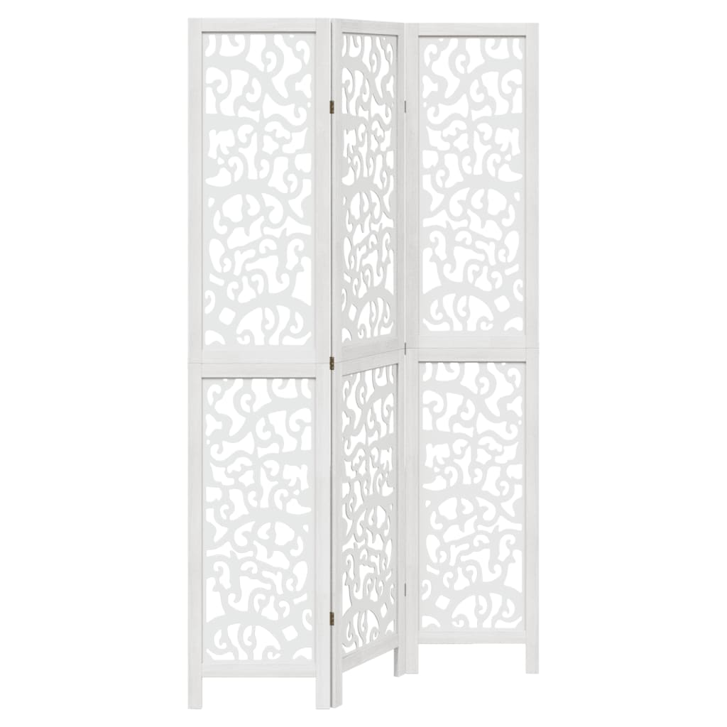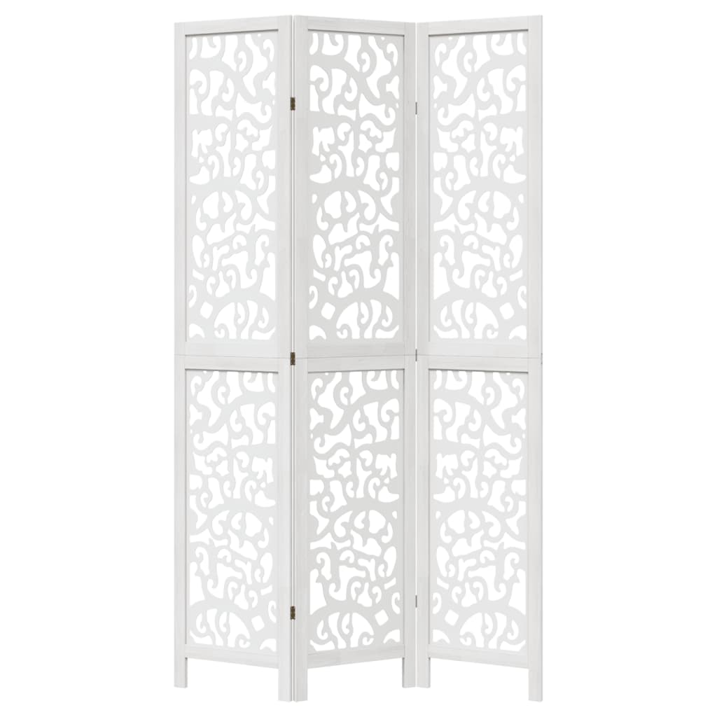 Paravan cameră 3 panouri, alb, lemn masiv paulownia