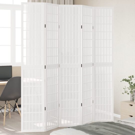 Paravan cameră 5 panouri, alb, lemn masiv paulownia