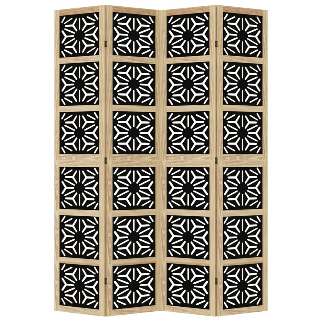 Paravan de cameră, 4 panouri, maro/negru, lemn masiv paulownia