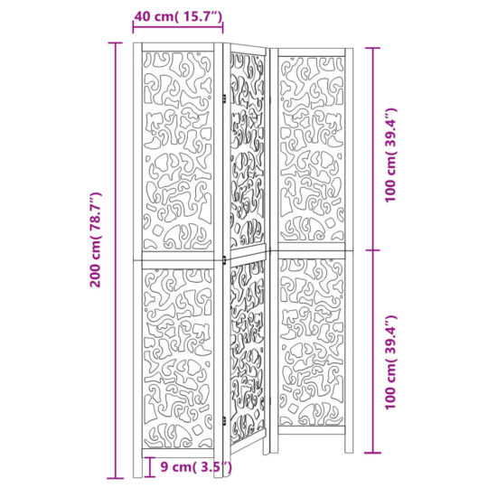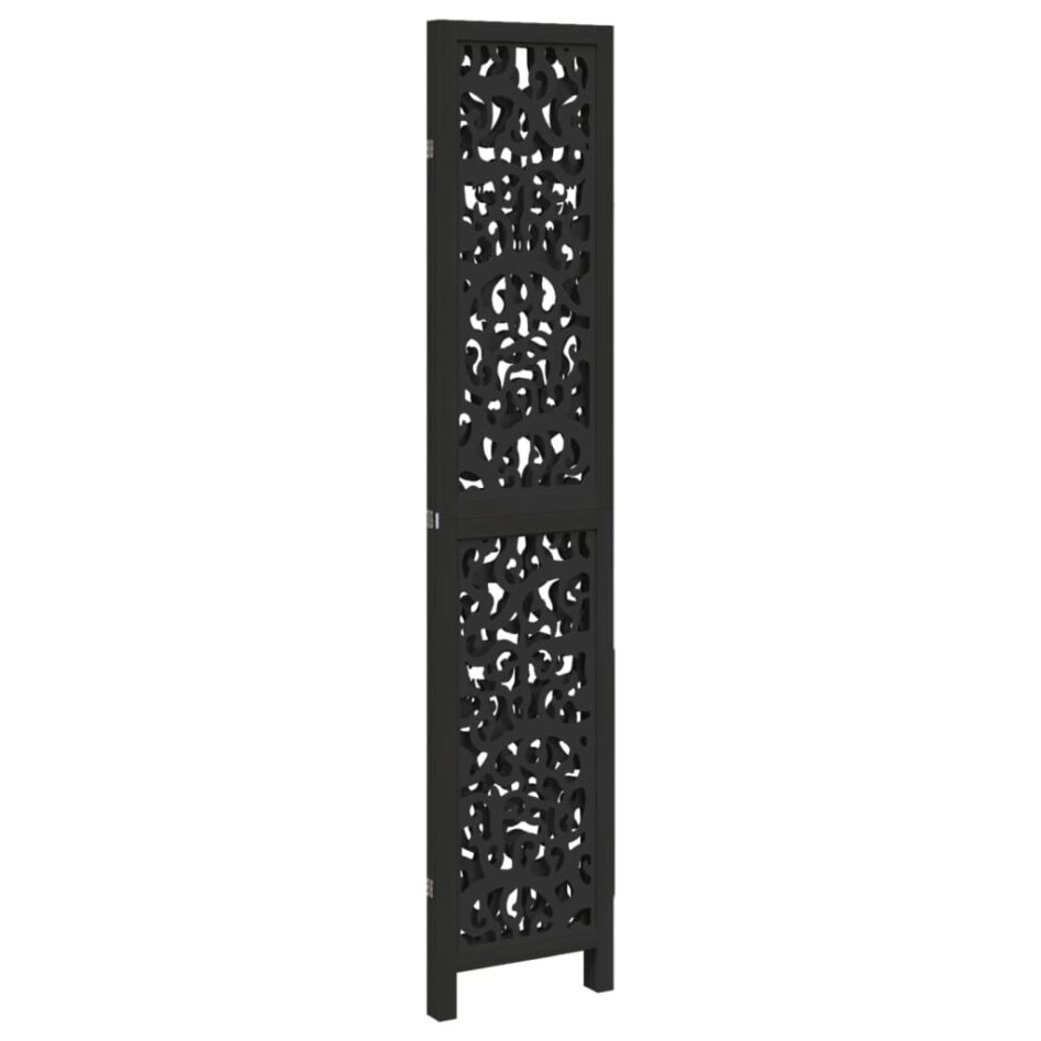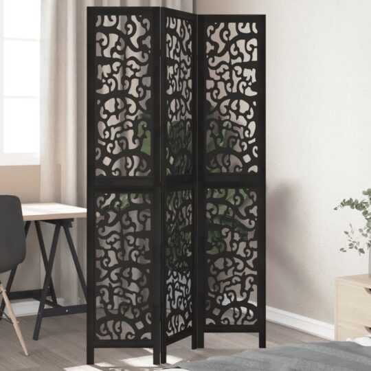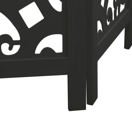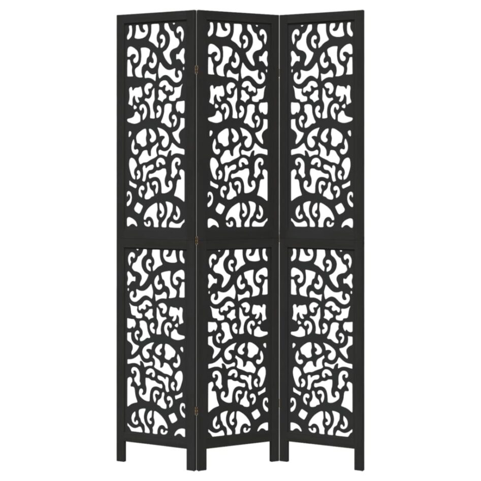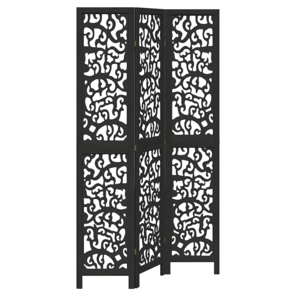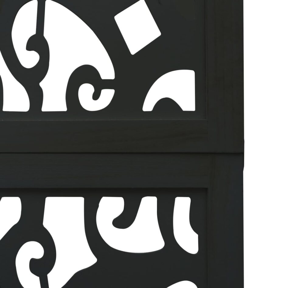 Paravan de cameră cu 3 panouri, negru, lemn masiv paulownia