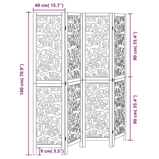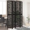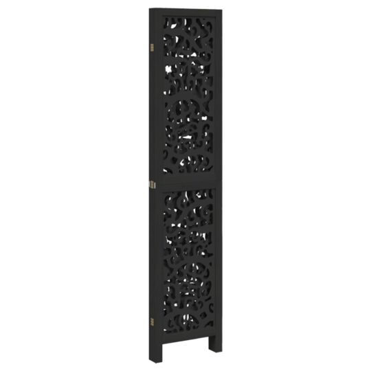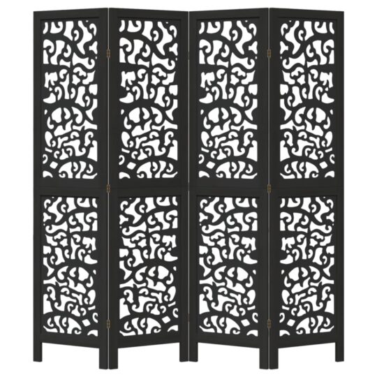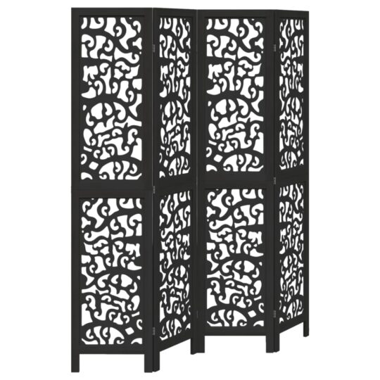 Paravan de cameră cu 4 panouri, negru, lemn masiv paulownia