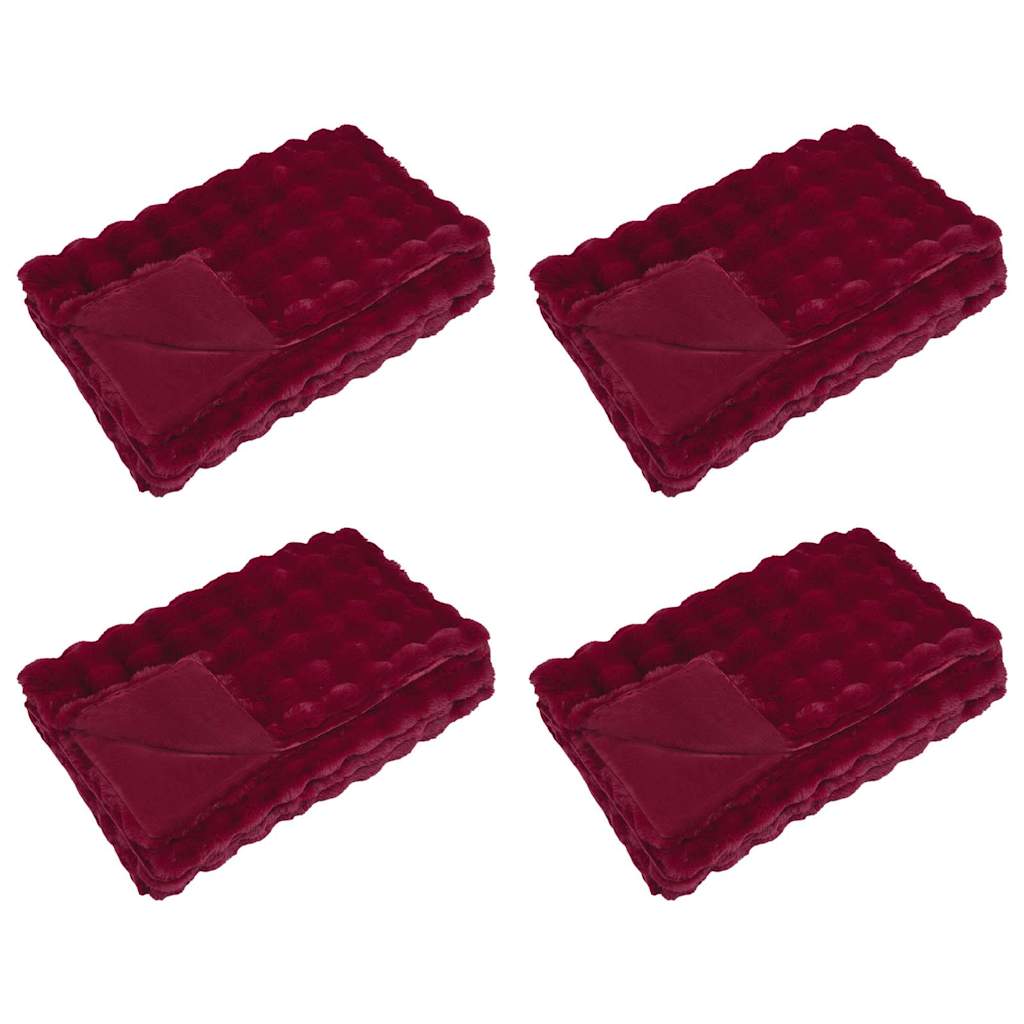 Pătură din Blană sintetică de Iepure 4 pcs Roșu Bordeaux