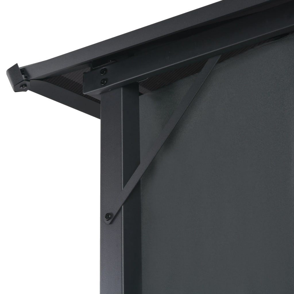 Acoperișul, realizat dintr-o placă PC cu o grosime de 6 mm, rezistentă la raze UV, vă protejează de strălucirea razelor solare directe și de radiațiile ultraviolete dăunătoare. Foișorul este construit solid din aluminiu și oțel puternic și, prin urmare, este rezistent la rugină și foarte stabil. Pavilionul este livrat cu 4 pereți laterali, care pot fi trași în condiții meteorologice nefavorabile. Dispozitivele de fixare prin bandă autoadezivă cu arici sunt, de asemenea, incluse pentru atașarea ușoară a perdelelor.