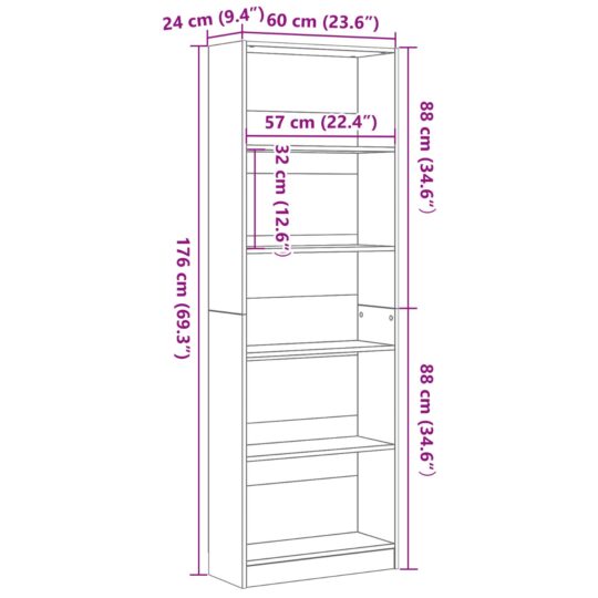 Raft de Cărți Stejar negru 60 x 24 x 176 cm Lemn compozit