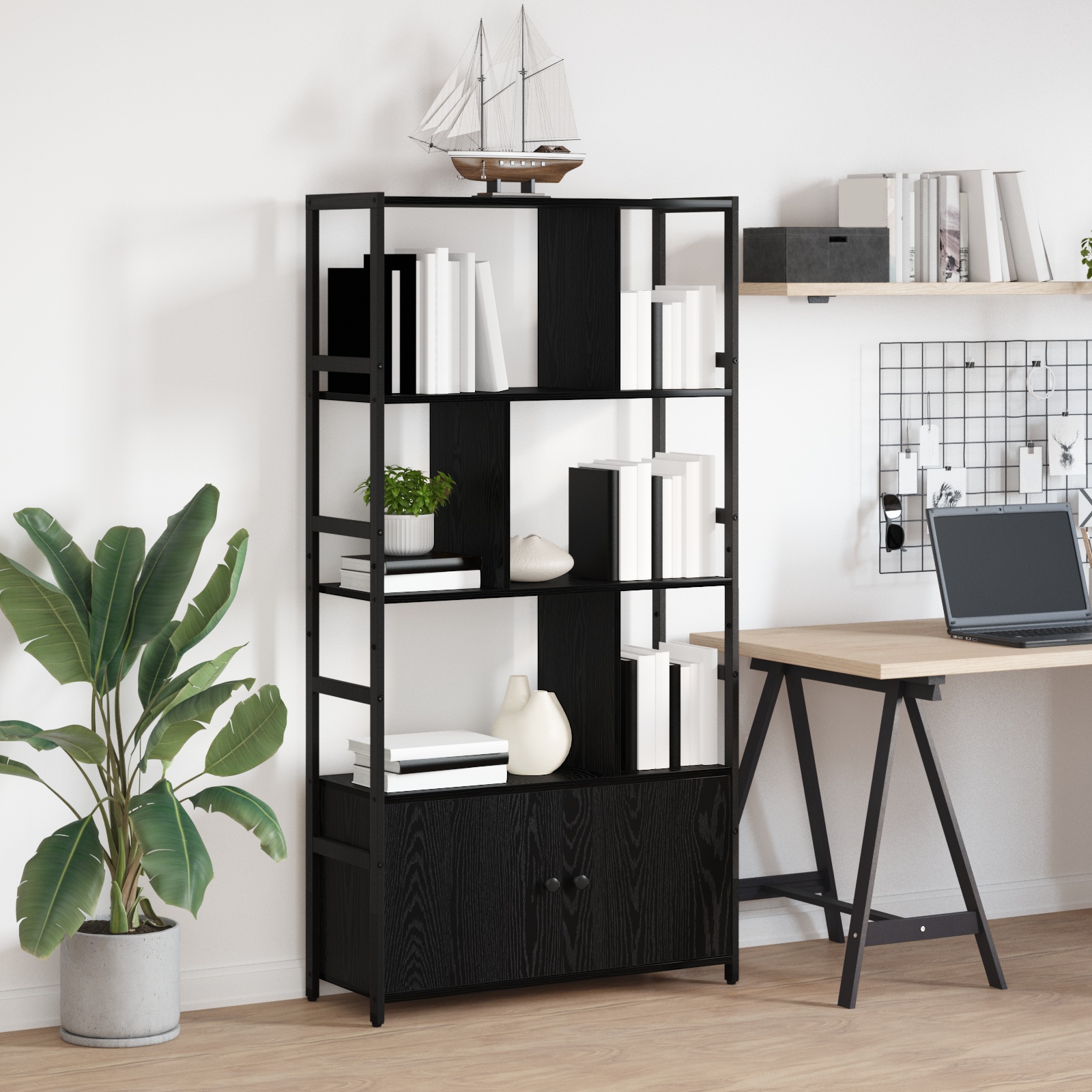 • Componente Incluse: Are rafturi etajate, ceea ce îi oferă un stocare unică. Aceste rafturi sunt perfecte pentru cărți și decorațiuni, făcându-l atât funcțional, cât și stylish.