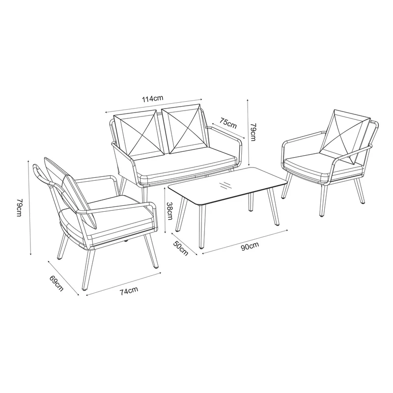 RENNES Set mobilier terasă/grădină, 2 fotolii, canapea și masă