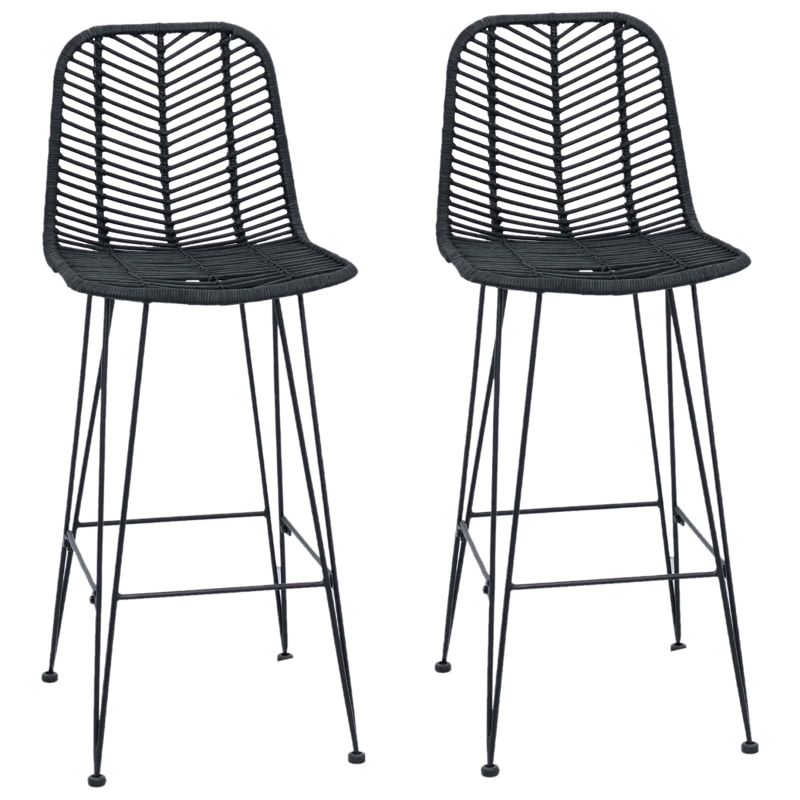 Scaun Bar 2 pcs Negru 44,5 x 53 x 111 cm Ratan și Fier