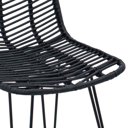 - Ratan natural și fier: Scaunul este făcut din ratan natural, rezistent, combinat cu fier robust pentru o structură solidă. Această combinație de calitate asigură că mobilierul poate rezista la utilizarea zilnică, aducând un aspect rustic care atrage privirile și fuzionând stilurile organice cu cele industriale.