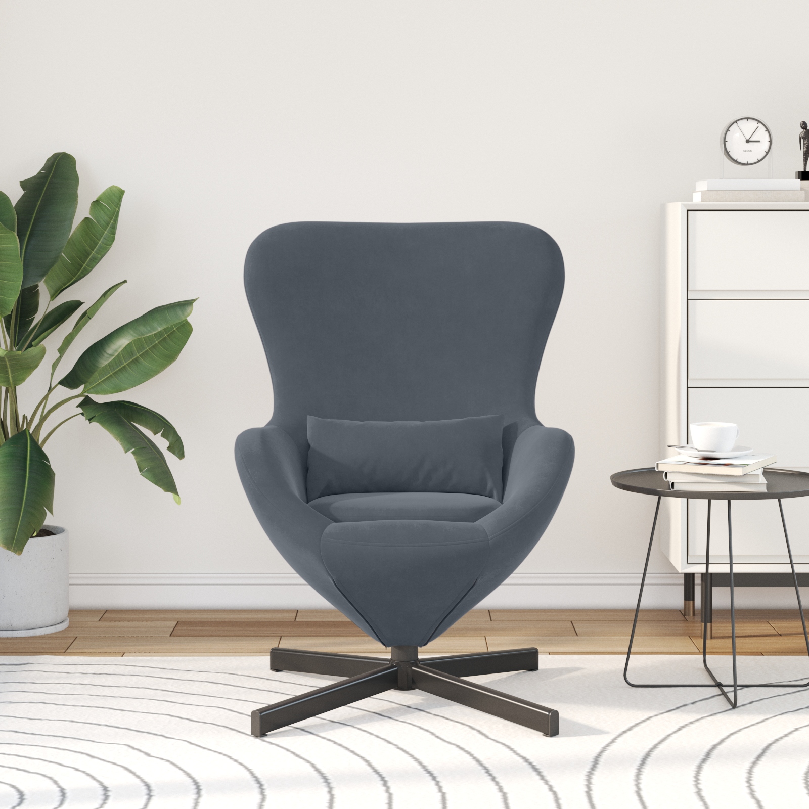 - Componente Incluse: Fotoliul Egg are un spătar curbat și cotieră înclinată pentru suport bun. Arată bine din orice unghi, iar picioarele din oțel negru îl fac stabil. În plus, se rotește, adică e super comod pentru diverse activități.