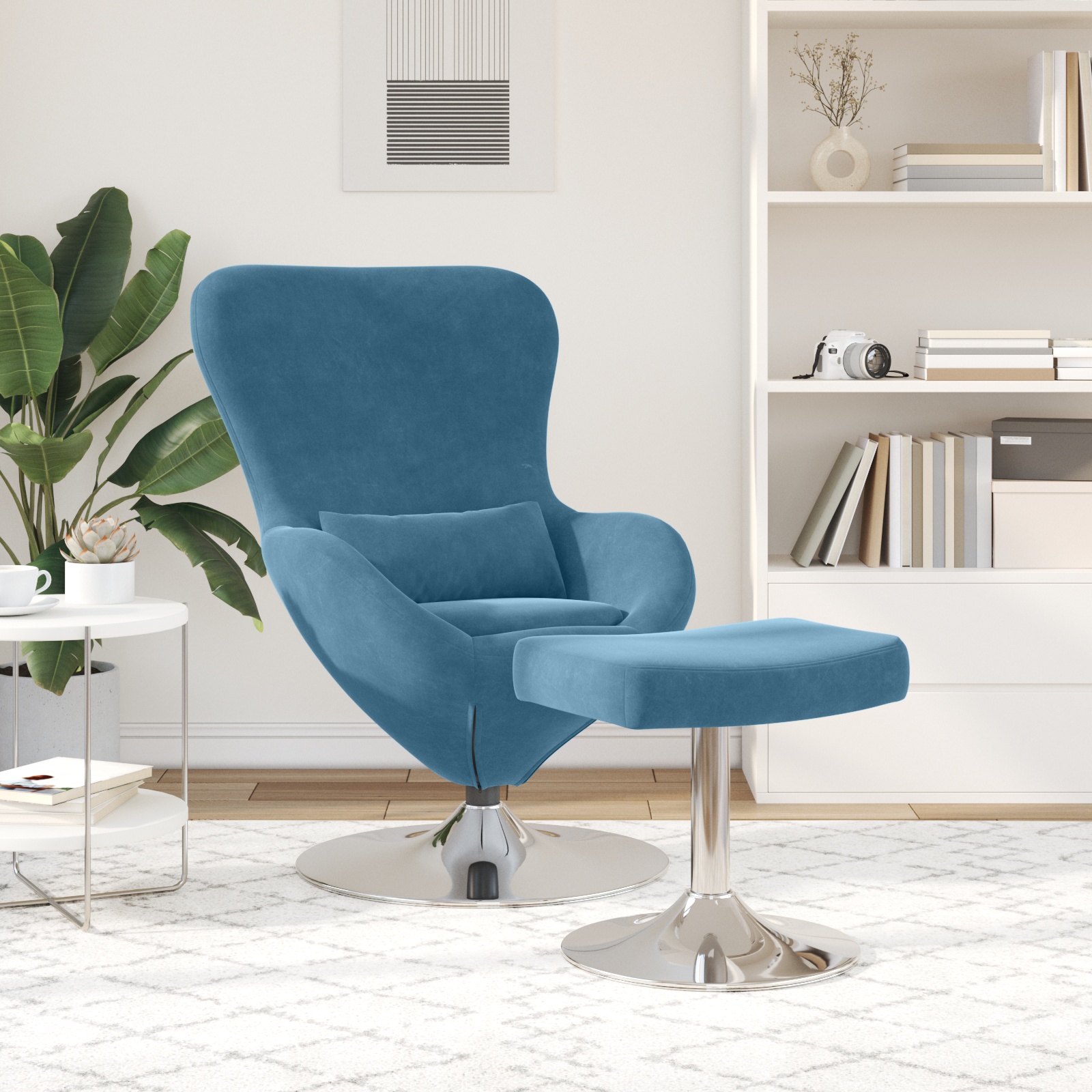 Scaun Egg cu Taburet albastru 63 x 73 x 90 cm Catifea