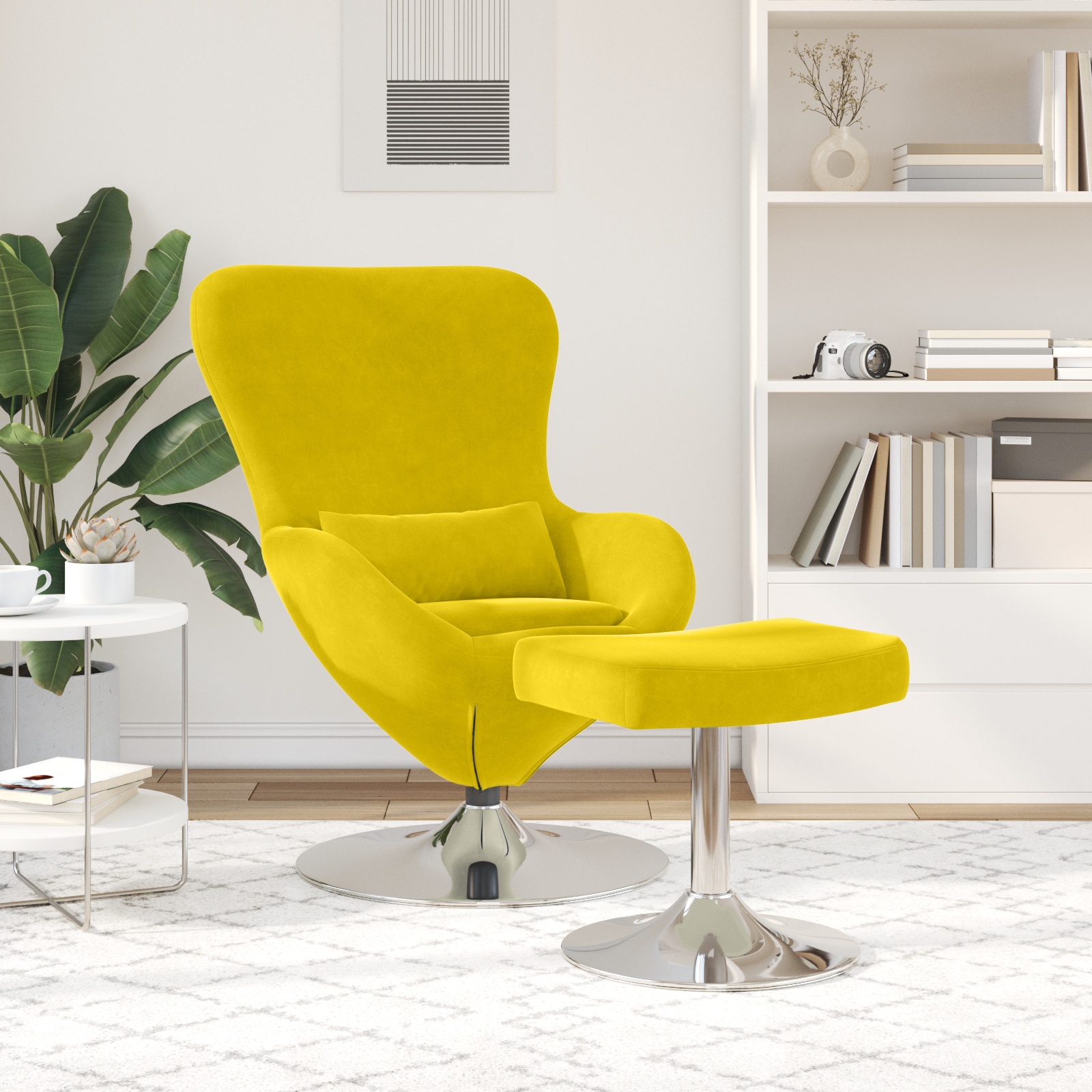 Scaun Egg cu Taburet Galben 63 x 73 x 90 cm Catifea