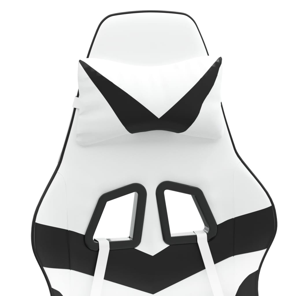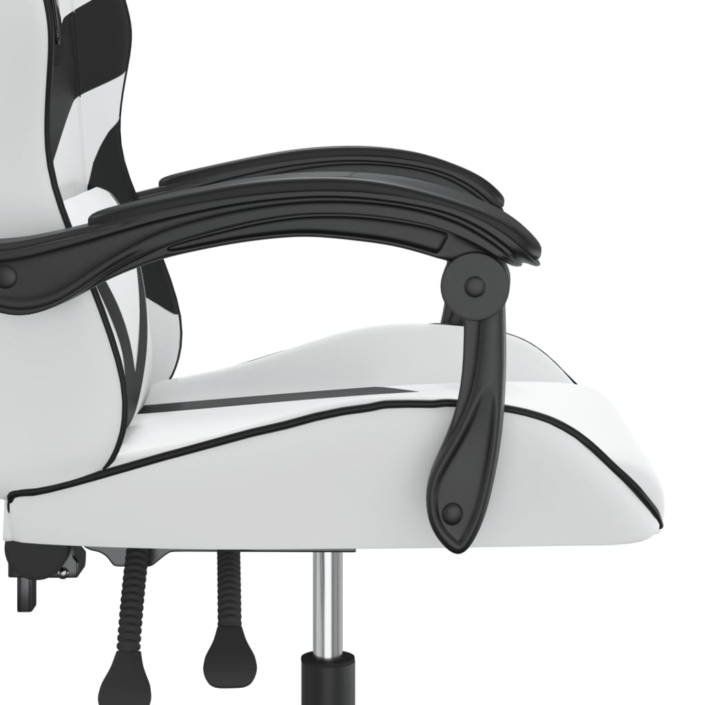 Scaun de gaming pivotant, alb și negru, piele ecologică