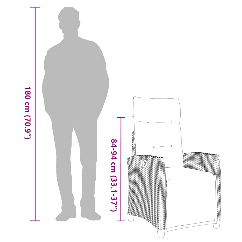 Scaun de grădină înclinabil cu măsuță laterală polirattan negru