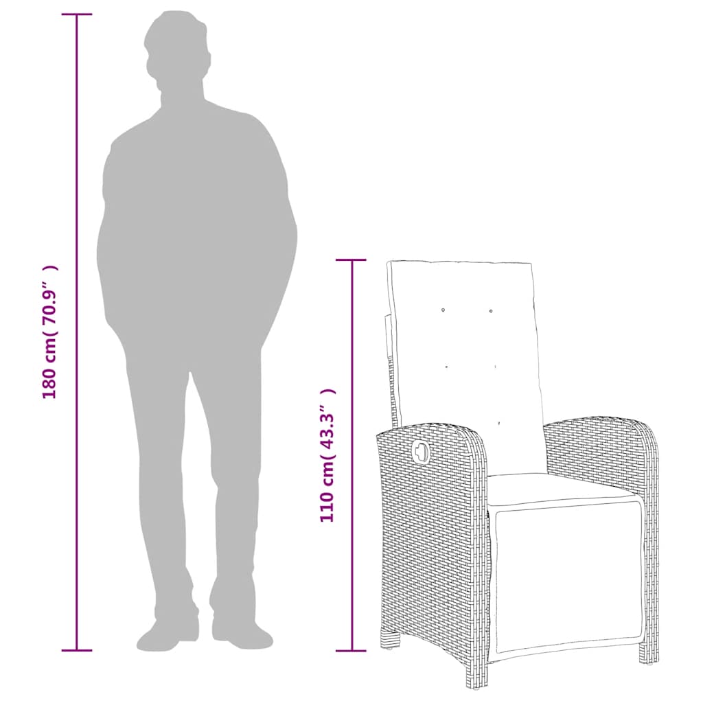Scaun de grădină rabarabil cu suport picioare, gri, poliratan