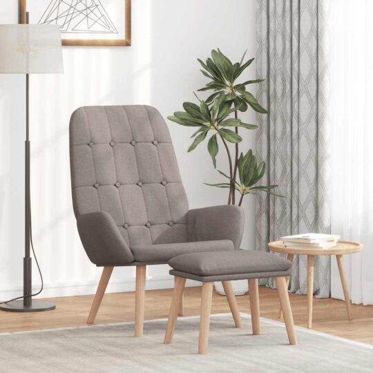 Scaun de relaxare cu taburet, gri taupe, textil
