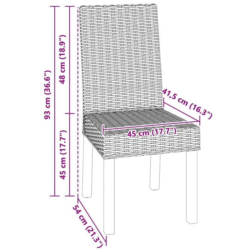 • Instrucțiuni de Întreținere Pentru a le menține aspectul, șterge scaunele frecvent cu o lavetă moale și uscată. Evită curățatoarele chimice dure care pot afecta ratanul sau lemnul. Verifică periodic să te asiguri că toate șuruburile sunt strânse și sigure pentru o utilizare durabilă. Îngrijirea corectă va menține aceste scaune atrăgătoare și utile ani de zile.