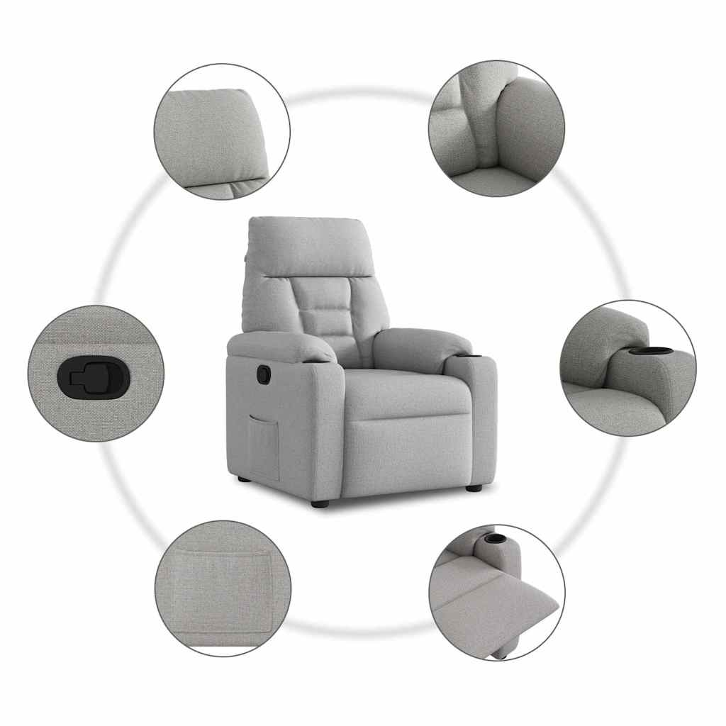 - Suporturi practice pentru pahare și buzunar lateral: Acest fotoliu include două suporturi practice de pahare pentru băuturi și un buzunar lateral pentru a vă păstra telecomanda sau alte articole esențiale la îndemână.