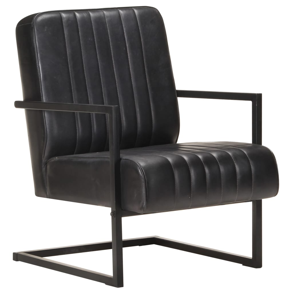Scaun fotoliu tip consolă, negru, piele naturală