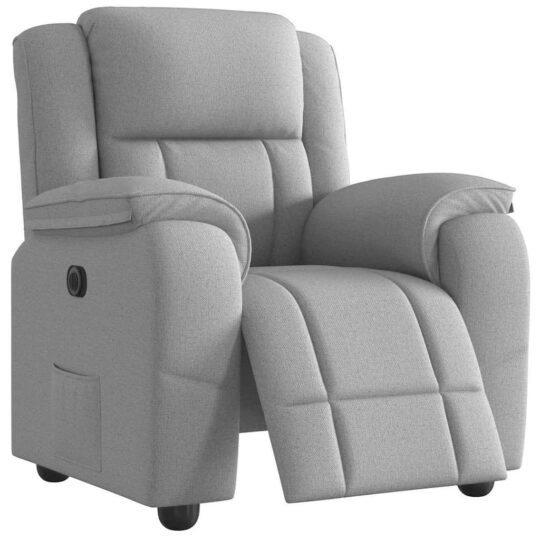 • Funcție electrică de înclinare: Acest fotoliu rabatabil este echipat cu un motor electric care ajută la reglarea automată a suportului pentru picioare și a spătarului, în orice poziție, conform confortului dvs., printr-o simplă apăsare a butonului de pe lateralul scaunului. Această funcție permite o înclinare maximă de 135 de grade. În plus, spătarul poate reveni automat la locul inițial, printr-o apăsare ușoară a butonului.