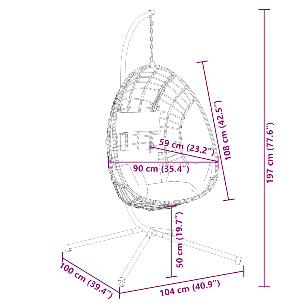 Scaun suspendat tip ou, cu suport, taupe, ratan și oțel