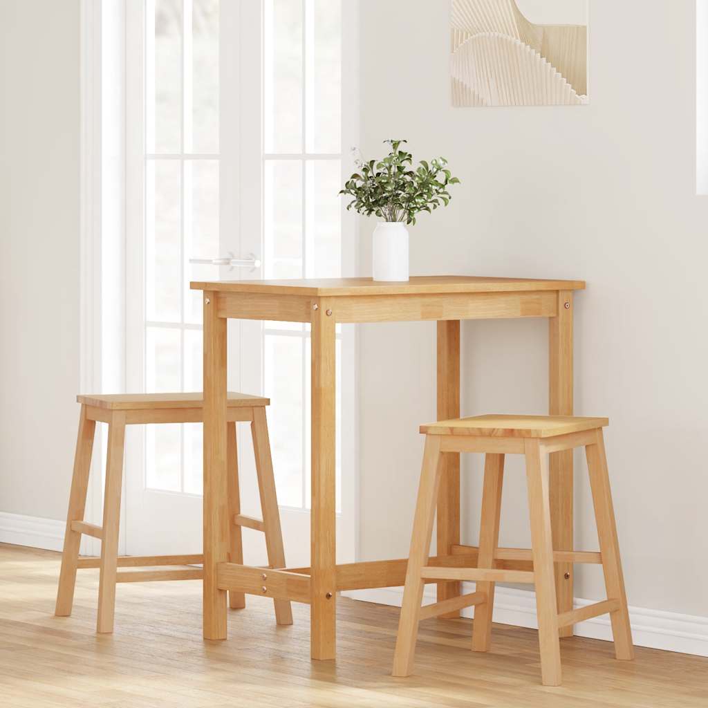 Scaune de bar 2 buc din lemn masiv cauciuc