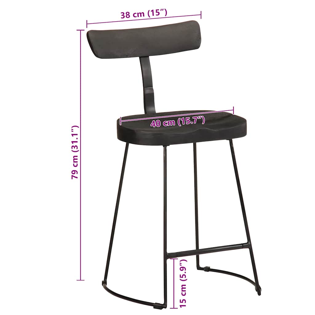 Scaune de bar 2 buc Negru 49x43x79 cm Lemn masiv Mango