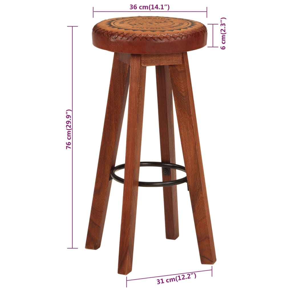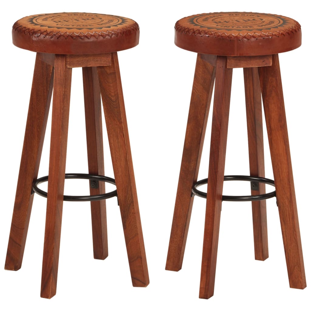 Scaune de bar, 2 buc., piele naturală și lemn masiv de acacia