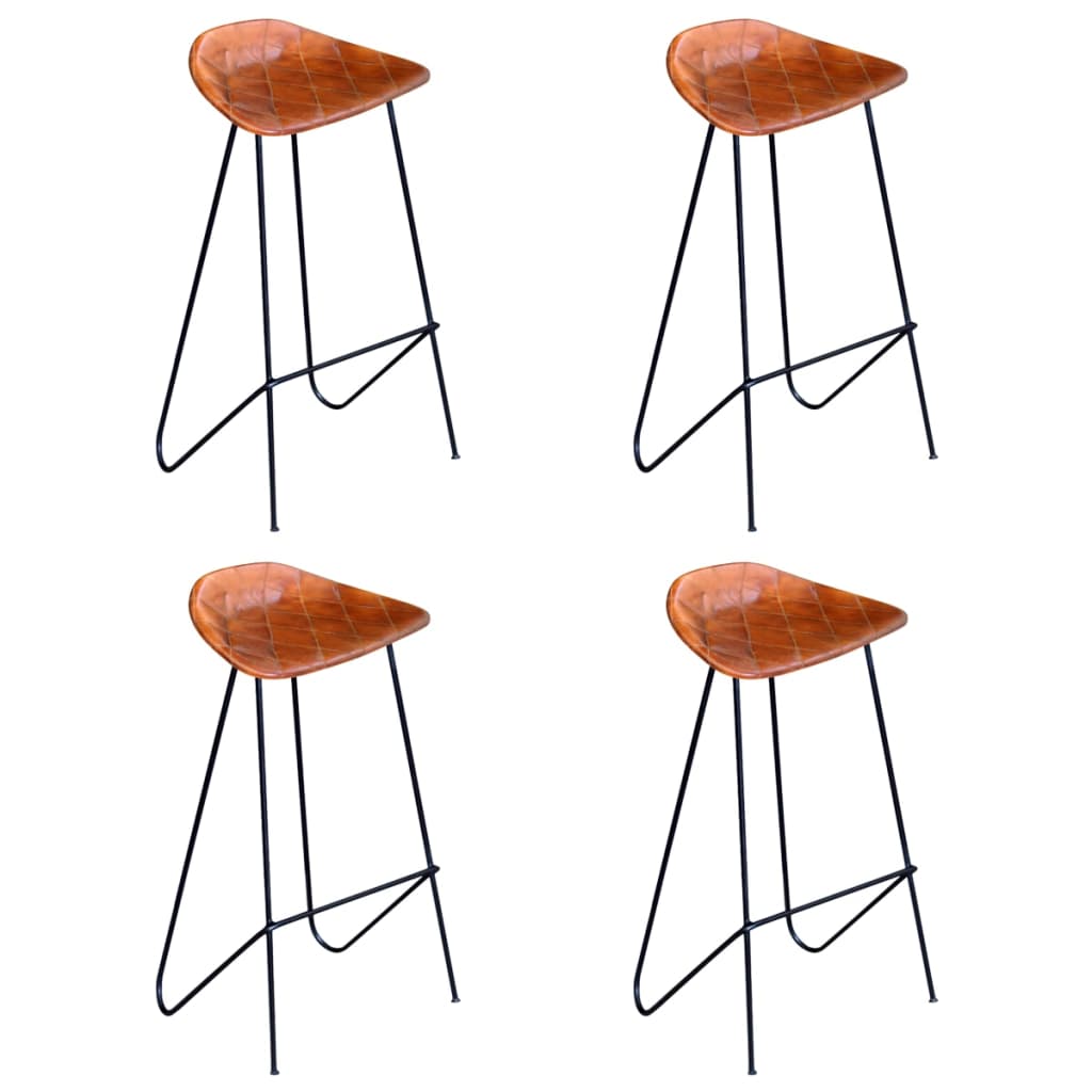 Scaune de bar, 4 buc., maro, piele naturală