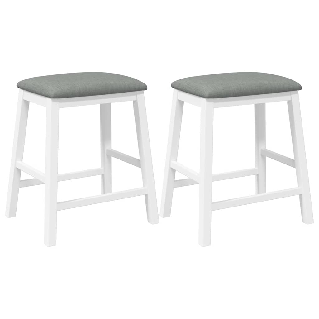 Scaune de bar cu perne 2 buc din cauciuc din lemn masiv alb