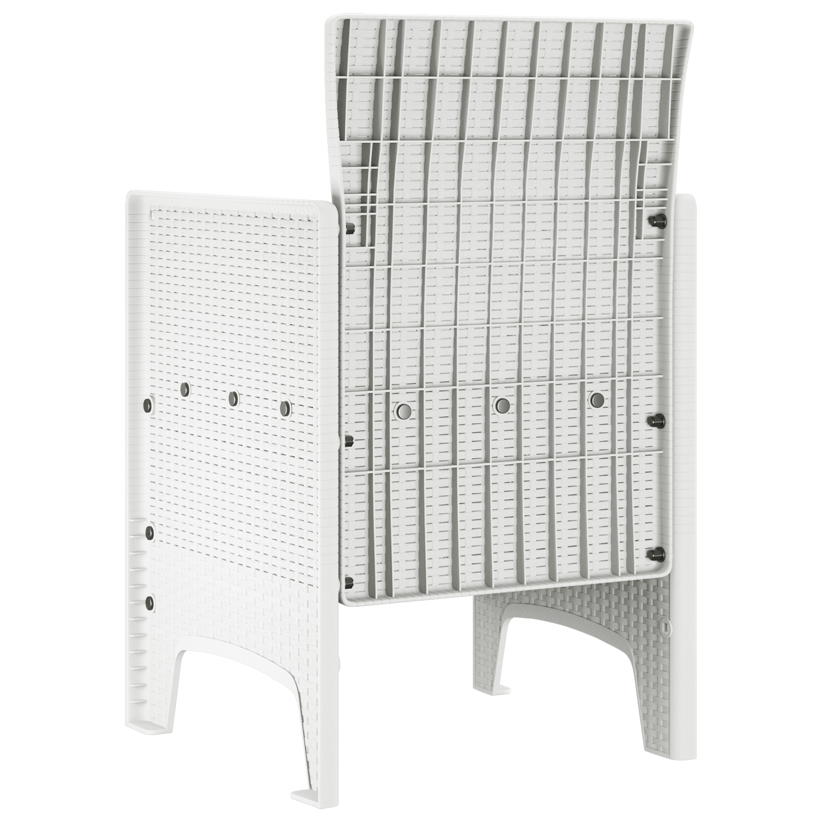 • Material din Polipropilenă: Fabricat din polipropilenă solidă, scaunul e ușor dar super rezistent. Rezistă la UV și e impermeabil, așa că nu are de suferit din cauza vremii. Îi poți face o curățare rapidă, e și neted.