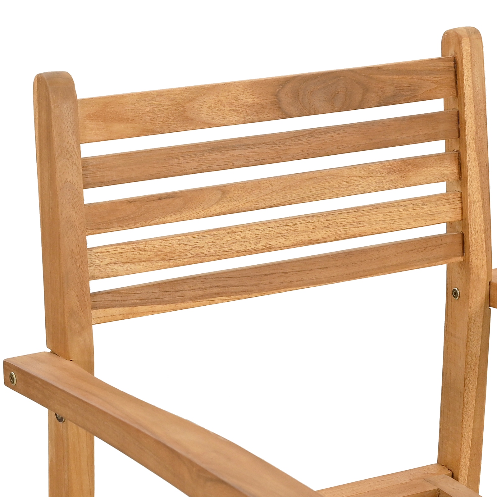 - Material Lemn Masiv de Tec Fabricat cu precizie din lemn masiv de tec, cunoscut pentru longevitate și rezistența la elemente. Acest lemn premium garantează ani de utilizare, susținând designul scaunului și păstrând un aspect natural și atemporal, chiar și în condiții de vreme variabilă.