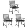 Scaune de masă exterior cu perne, 3 buc., lemn masiv acacia