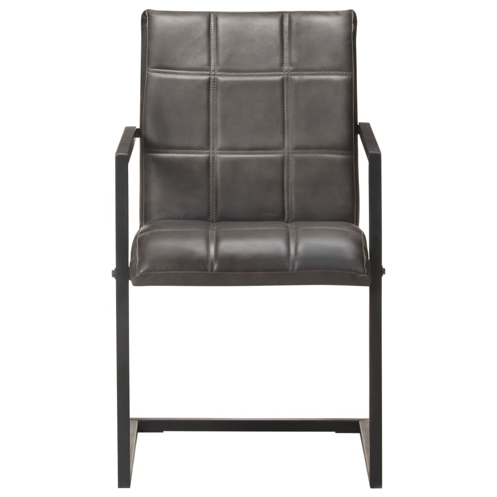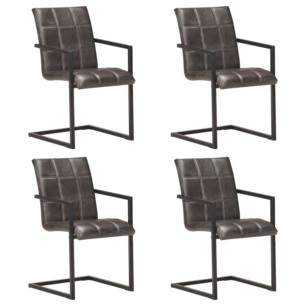 Scaune de masă tip consolă, 4 buc., gri, piele naturală