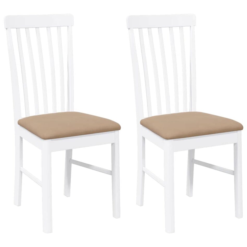 Scaune de sufragerie cu perne 2 buc cauciuc din lemn masiv alb