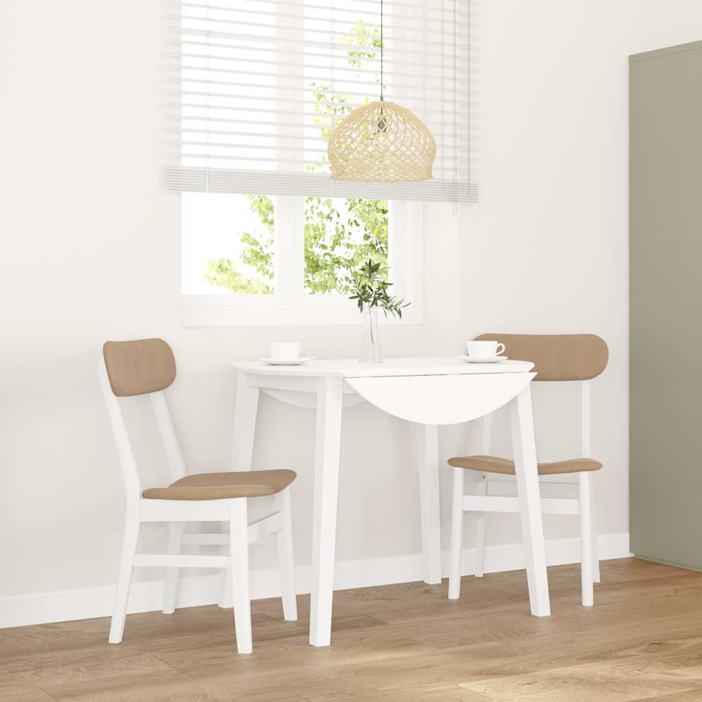 Scaune de sufragerie cu perne 2 buc cauciuc din lemn masiv alb