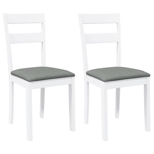Scaune de sufragerie cu perne 2 buc cauciuc din lemn masiv alb