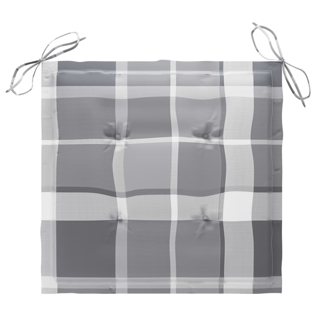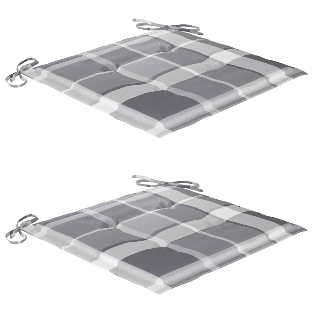 Scaune grădină, perne gri model carouri, 2 buc., lemn masiv tec