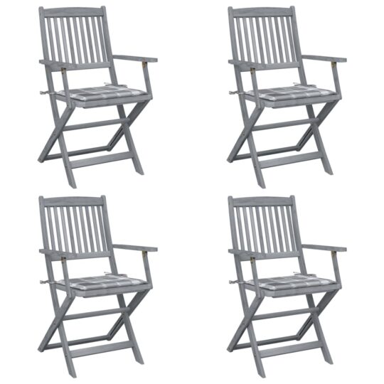 Scaune pliabile de exterior cu perne, 4 buc., lemn masiv acacia