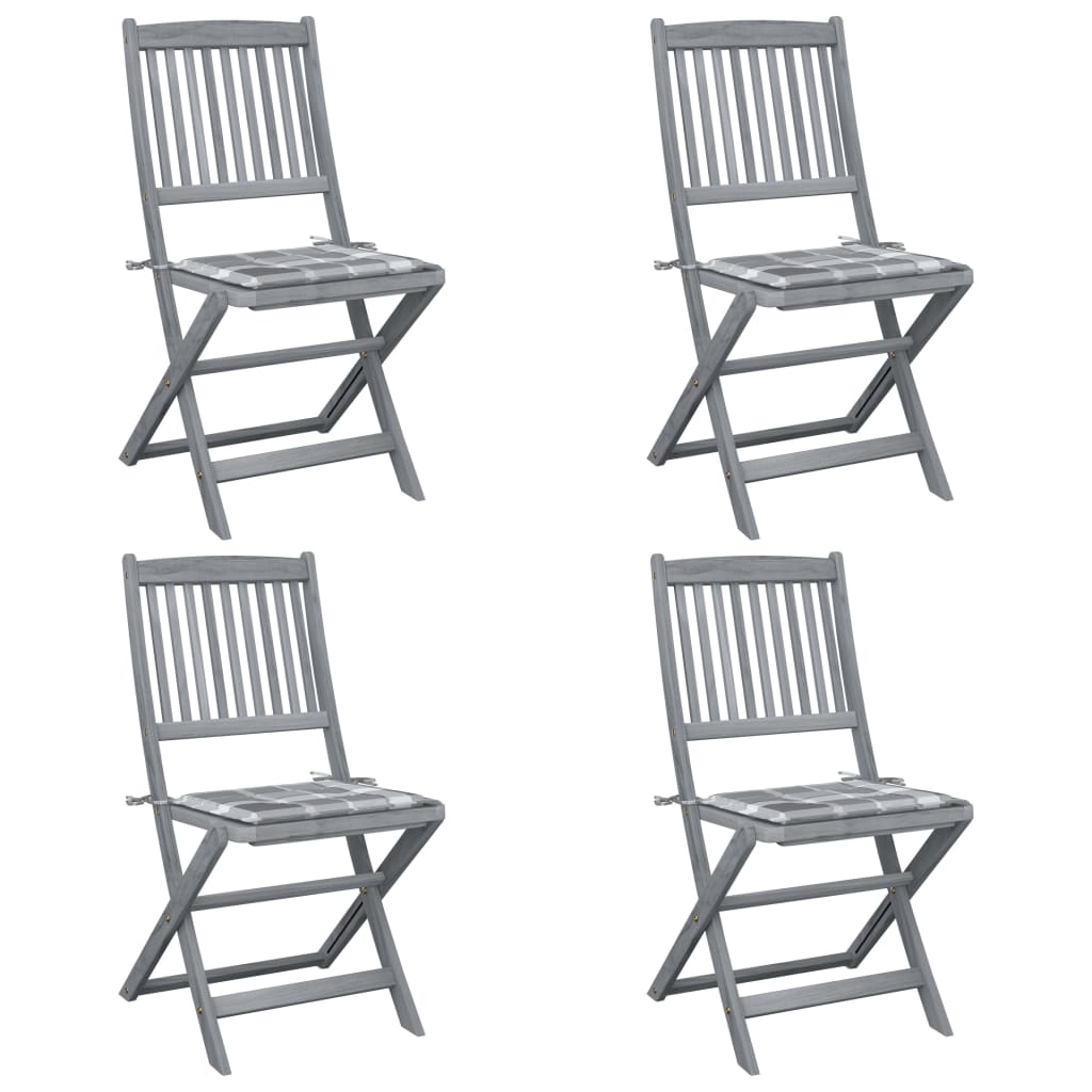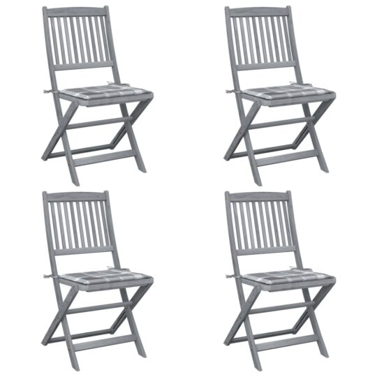 Scaune pliabile de exterior cu perne, 4 buc., lemn masiv acacia