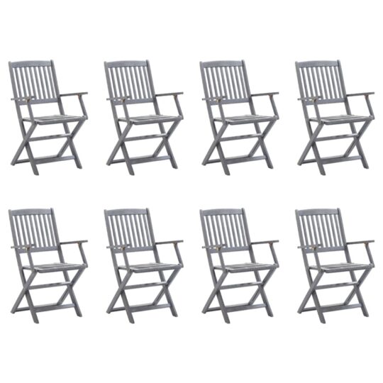 Scaune pliabile de exterior cu perne, 8 buc., lemn masiv acacia
