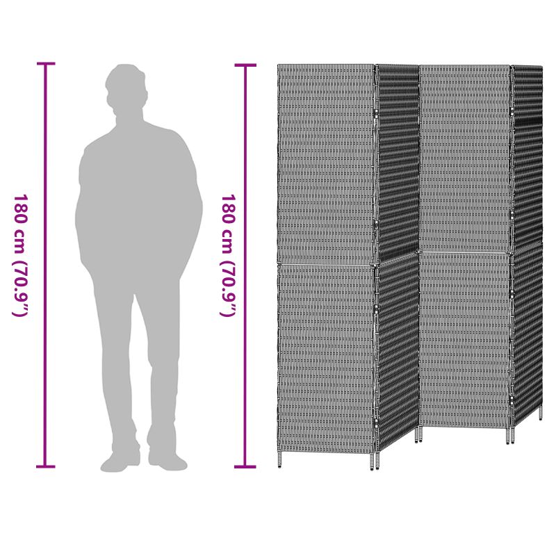 Foaia asta de separare pliabilă din poliratan e o modalitate elegantă de a crea un pic de intimitate la tine acasă. Cu designul său modern și linii curate, se potrivește perfect în orice amenajare a livingului. E făcută din poliratan rezistent la UV și oțel vopsit electrostatic, așa că e construită să dureze în interior. Forma ei dreptunghiulară permite multe opțiuni de aranjare, fie că vrei să delimitezi un studio confortabil sau să creezi un spațiu de lucru într-o zonă mai mare.