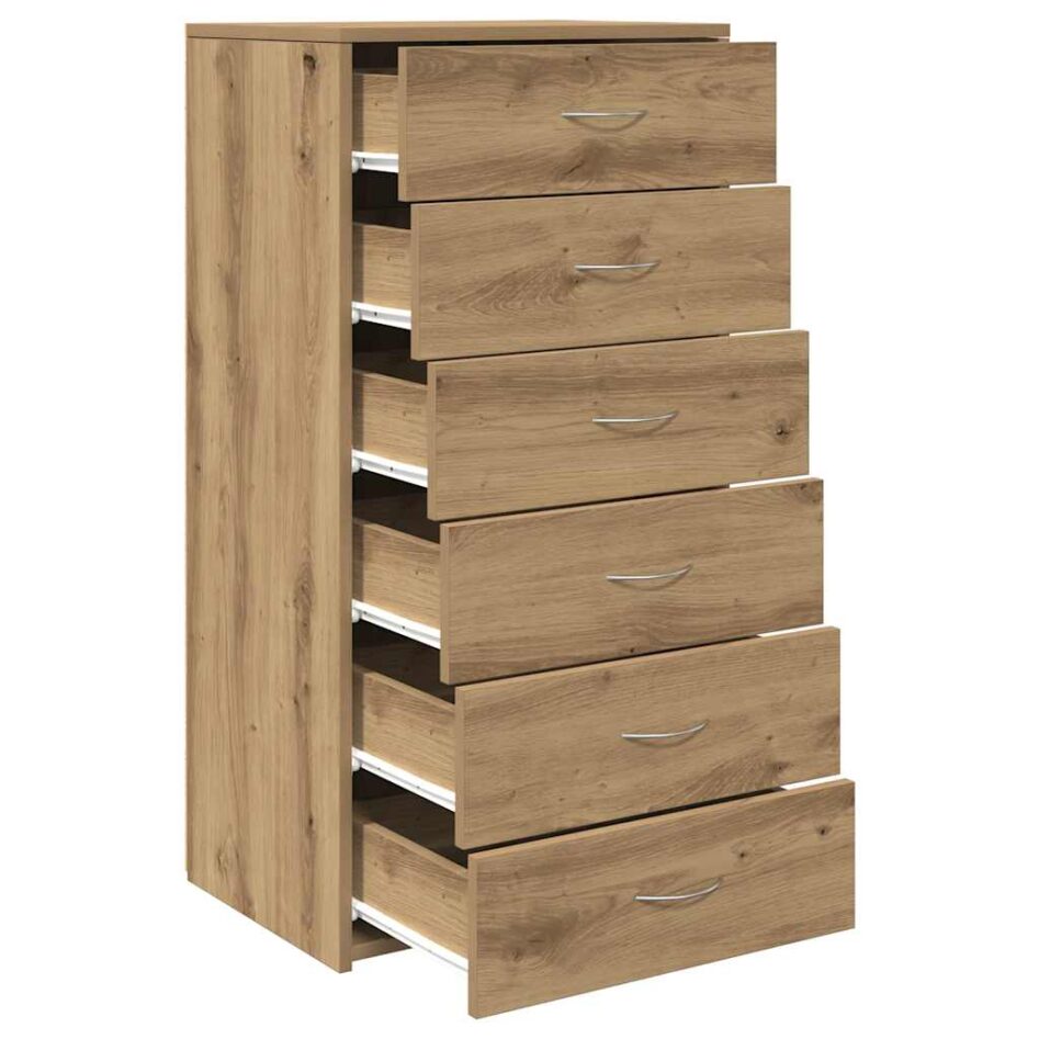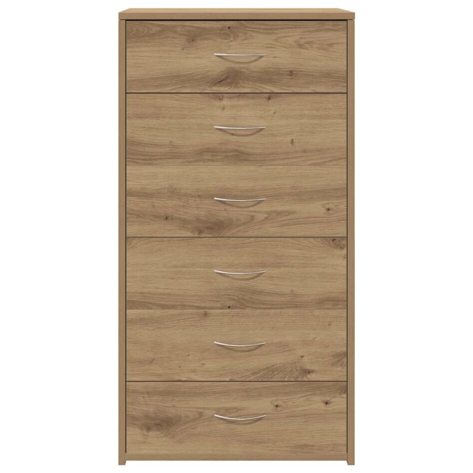 Servantă cu 6 sertare, Stejar artizanal, 50 x 34 x 96 cm, PAL