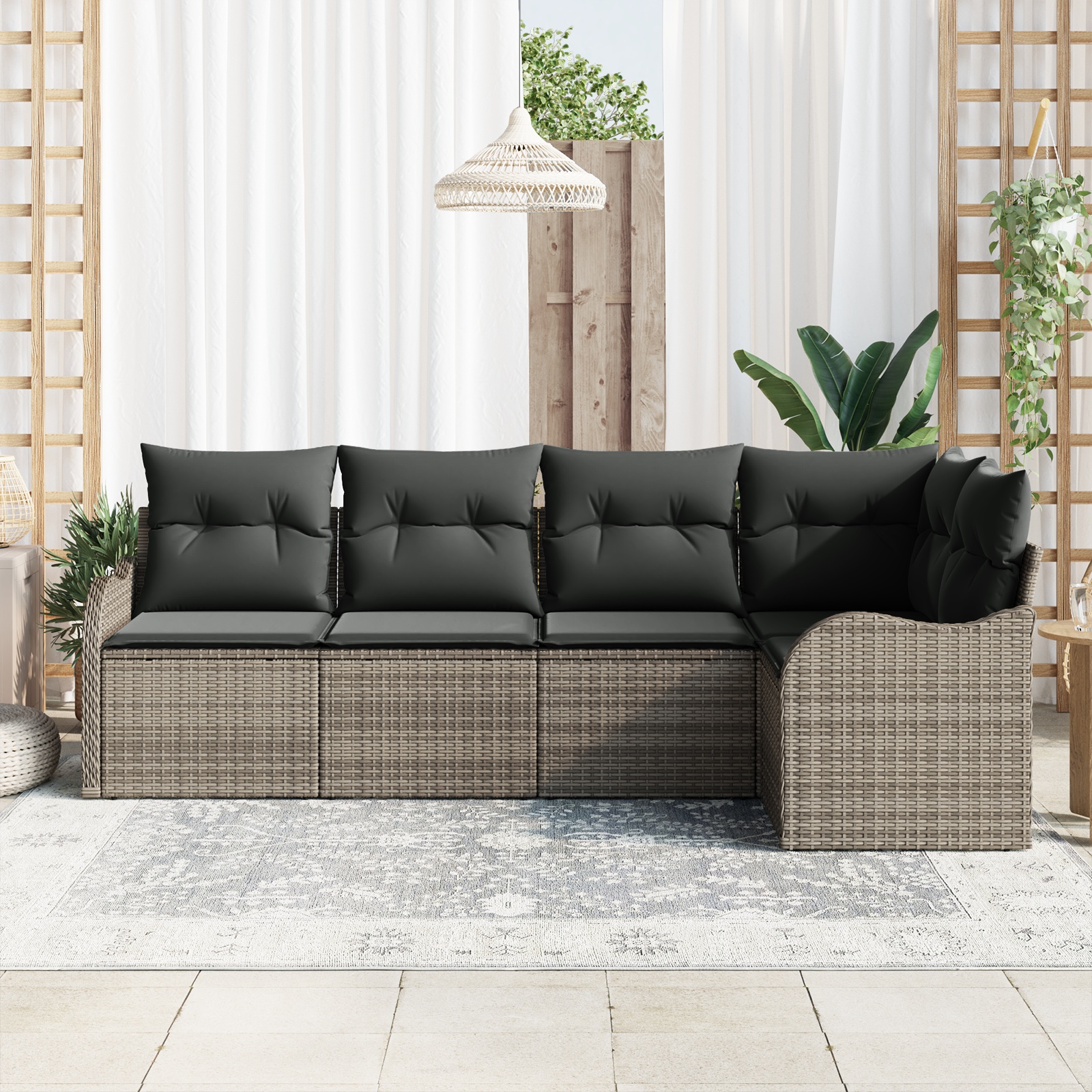 Set de canapele pentru grădină cu pernă 5 pcs Gri Rattan poli
