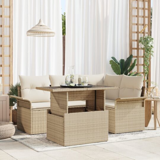 Set de canapele pentru grădină cu pernă 5 pcs Bej Rattan poli
