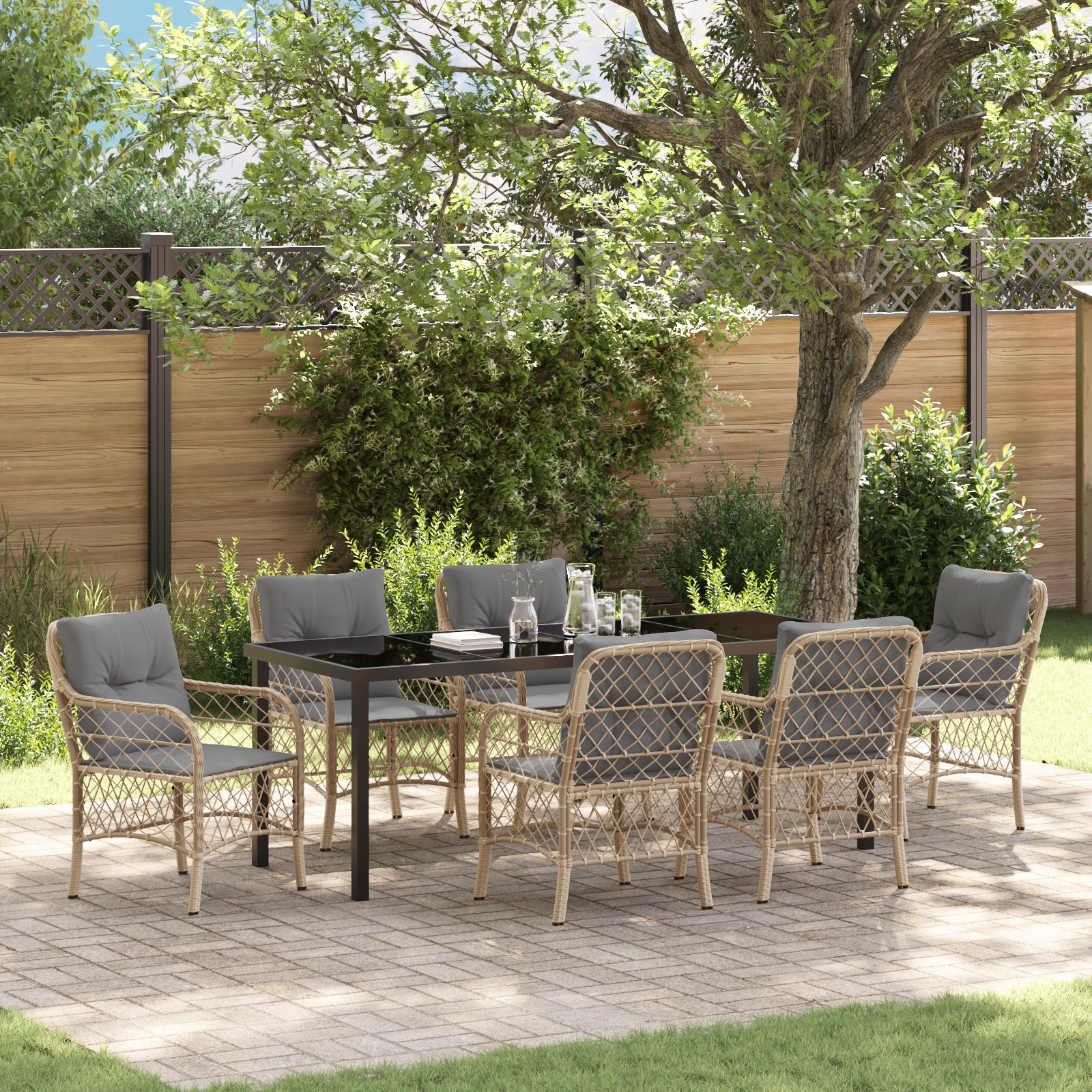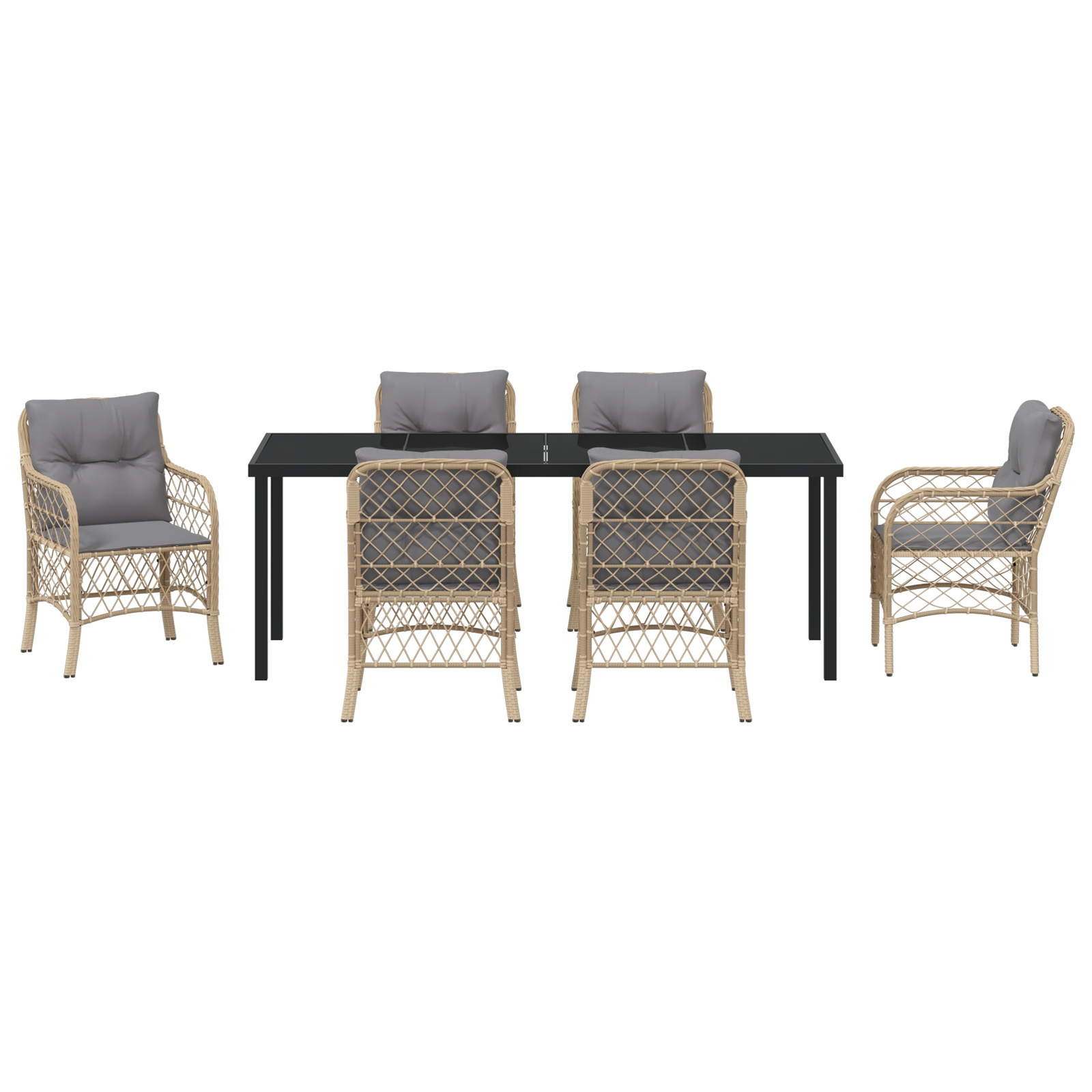 Set 7 piese masă grădină cu perne bej din ratan polimer