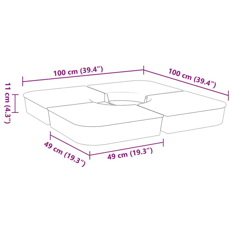Set bază de umbrelă soare 4 piese pentru suport cruce 100 kg PP