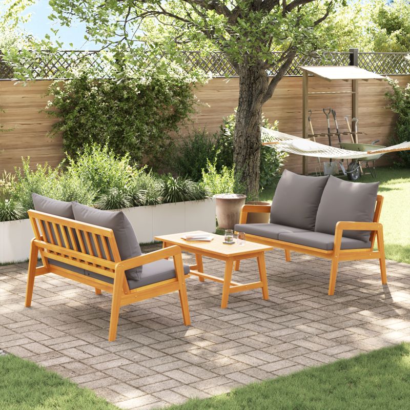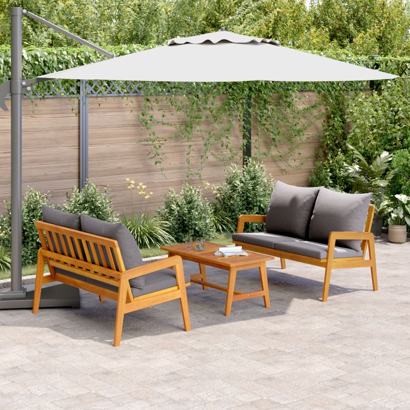 Setul de bănci din lemn de acacia pentru exterior îmbină stilul și utilitatea, fiind perfect pentru terasa sau grădina ta. Designul modern are linii frumoase care îmbunătățesc aspectul spațiilor exterioare, oferind în același timp locuri suficiente pentru familie și prieteni.